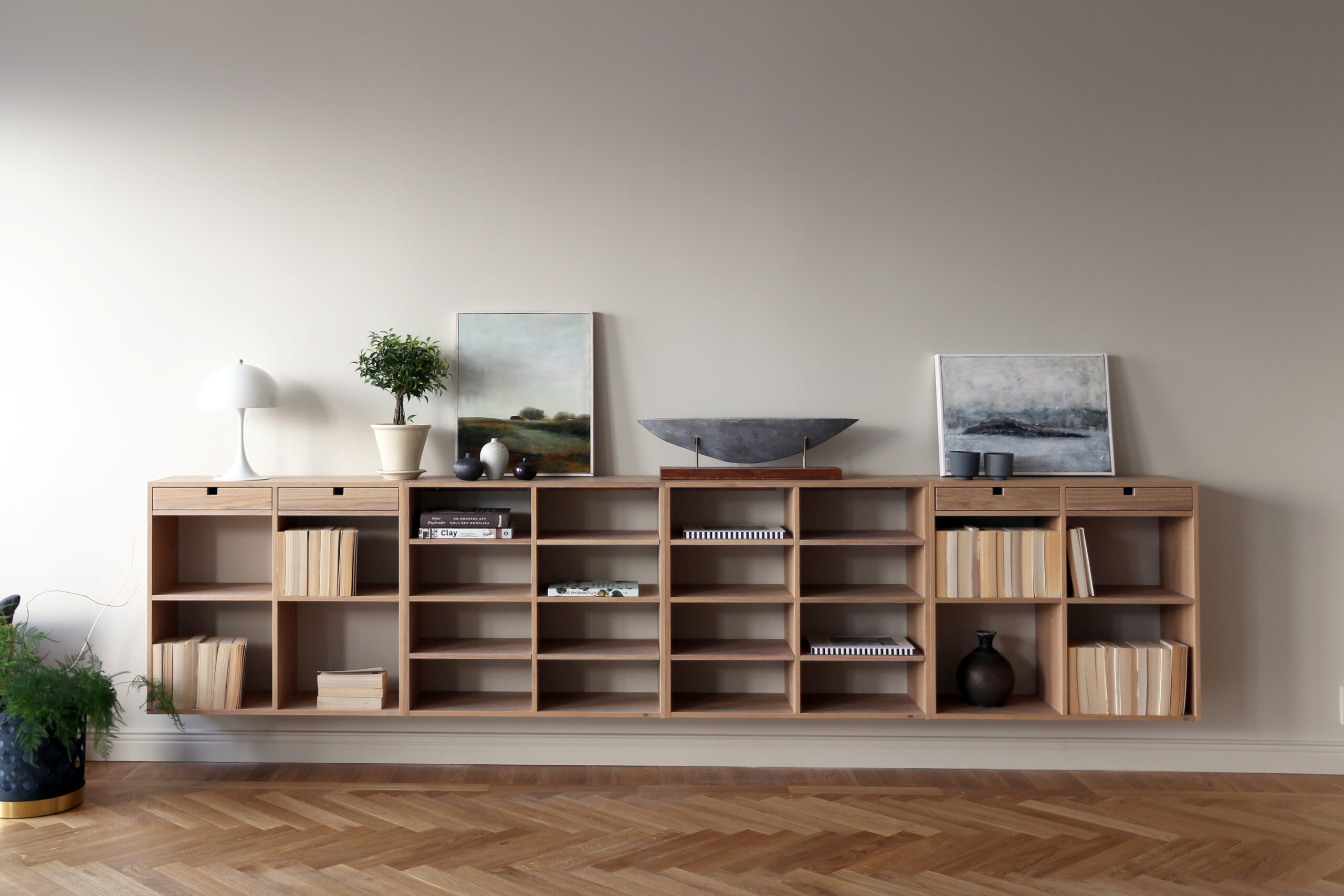 Högklint är vår hyllserie för dig som vill ha en bokhylla som både lyfter rummet och låter samlingen ta plats. Börja litet eller bygg stort – hyllsystemet anpassas efter rummets mått och din vision. Med valbara sektioner, material och ytbehandlingar kan du skapa en helhetslösning som känns självklar i hemmet.