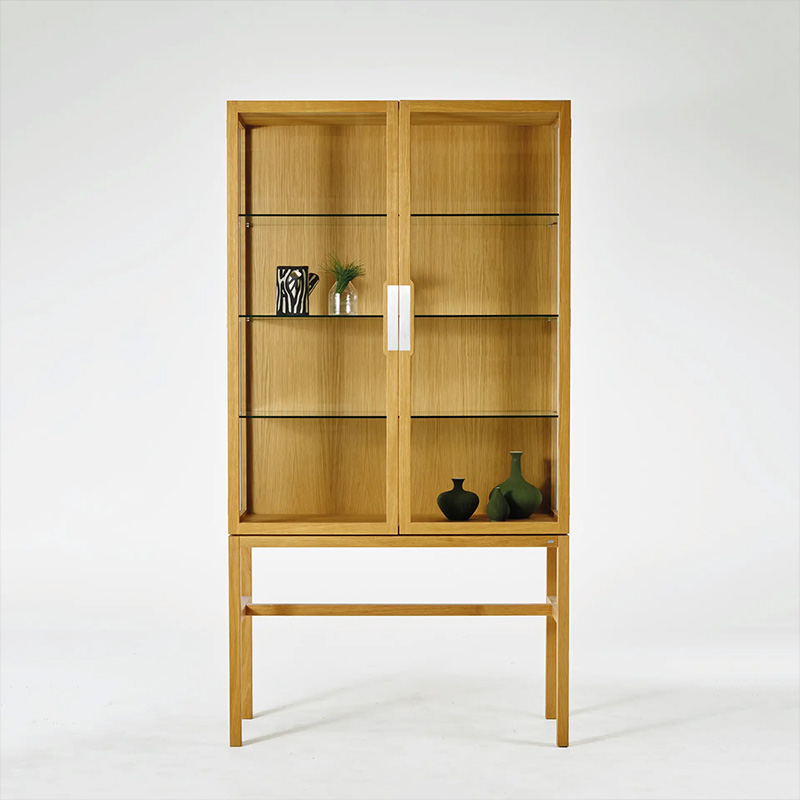 Vitrinskåp från G.A.D är framtagna för att lyfta fram det du vill visa: porslin, glas, böcker eller utvalda objekt. De glasade dörrarna skapar en känsla av lätthet, samtidigt som konstruktionen i massiv trä ger möbeln stabilitet och tyngd. Kombinationen av trä och glas ger ett uttryck av elegans och autenticitet – där innehållet får stå i centrum, men ramen bär dess värde.