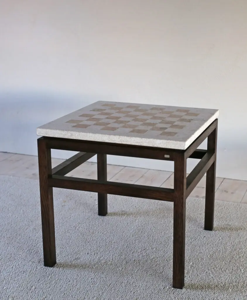 Bläse schackbord är en hyllning till det genomtänkta – en möbel där strategi möter skönhet, och där varje drag får vila på ett hantverk i världsklass. Med sin karaktäristiska skiva i massivt trä och ett blästrat rutmönster är bordet lika mycket ett bruksföremål som ett konstobjekt. Ett bord att samlas runt – och beundra.